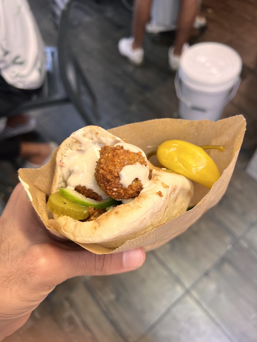 Amazing falafels! It was freshly made, crispy on the outside, soft on the inside. The pita was also fresh. Rare to find such decent falafel in an unassuming “hole in the wall” place. Enjoy!